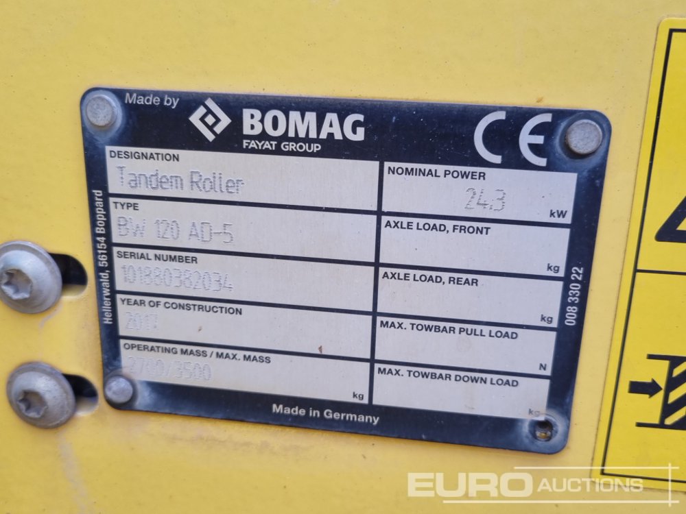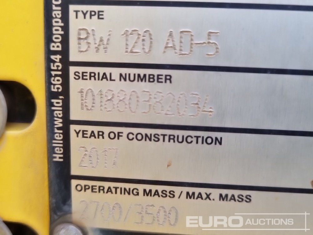2017 Bomag BW120AD-5 Double Drum Vibrating Roller, Roll Bar - 101880382034