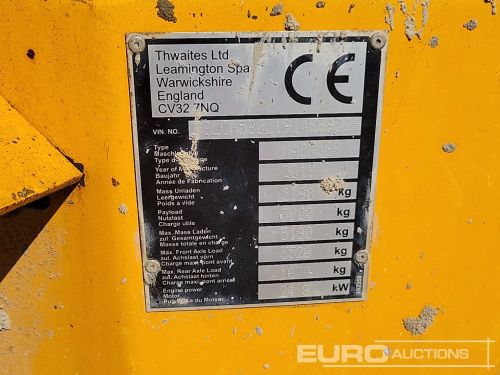 2019 Thwaites 3 Ton Swivel Skip Dumper, Roll Bar - SLCM580Z1914E8932