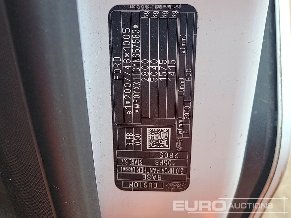 2022 Ford Transit Custom 280 6 Speed Crew Van, Side Doors, 3 Rear Seats, Cruise Control, Bluetooth, A/C, Parking Sensors (Tested 07/26) (Non Runner) - MJ22 YML - WF0YXXTTGYNS57583