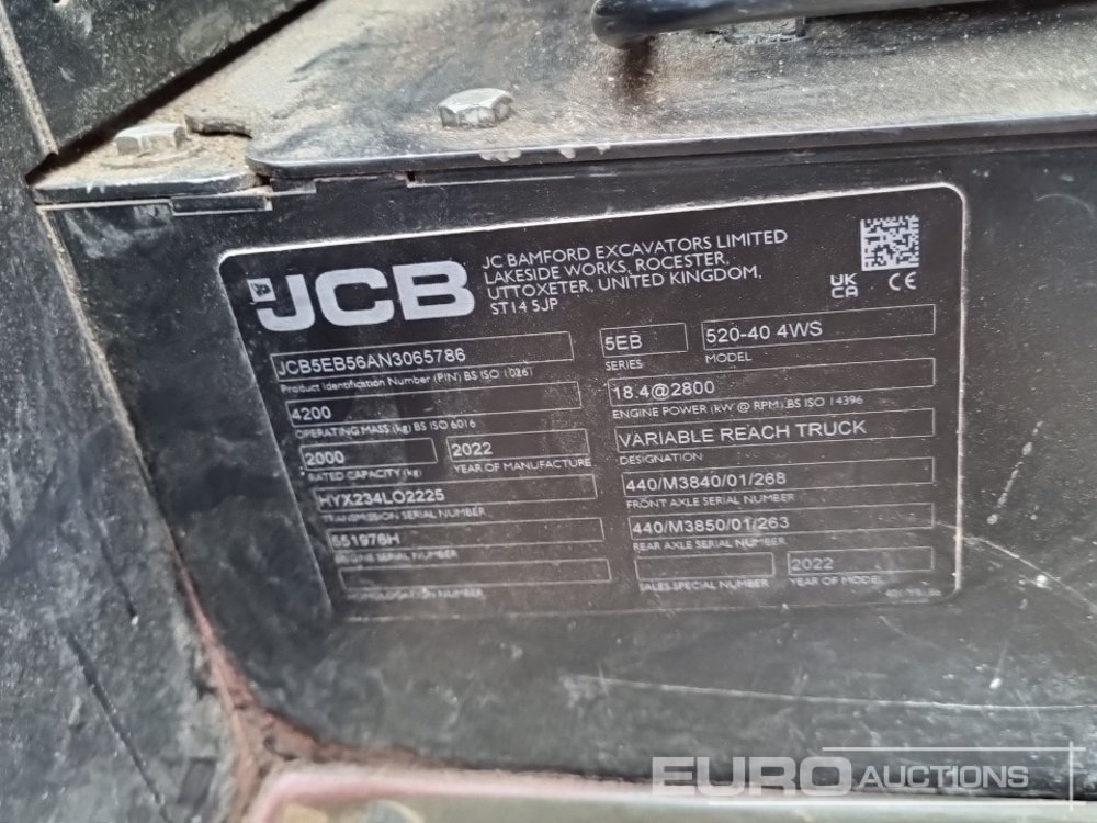 2022 JCB 520-40 Telehandler, QH, WLI, Forks - RJ22 UXO - JCB5EB56AN3065786