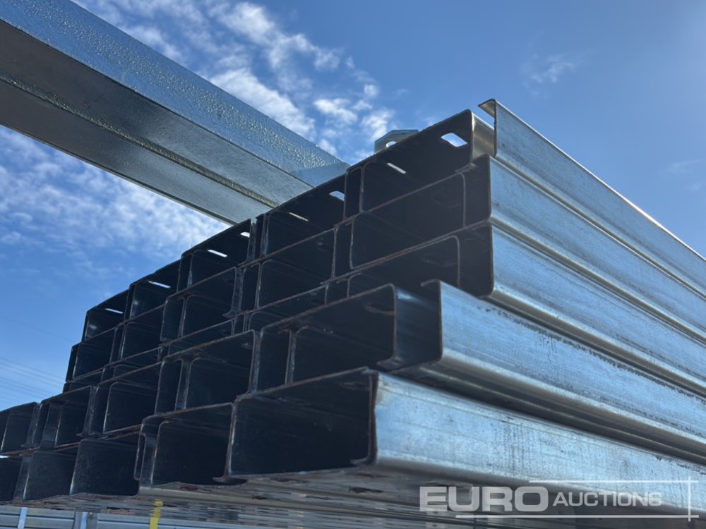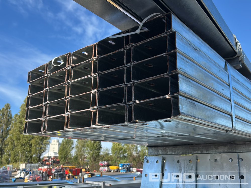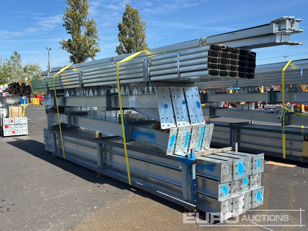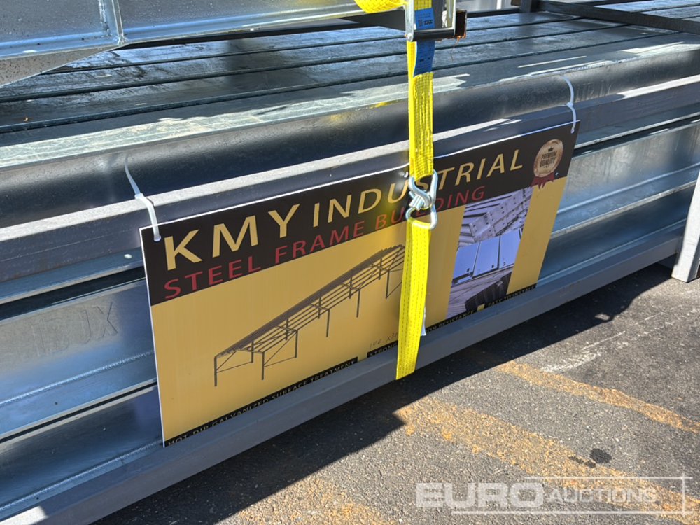 Unused 2025 KMY Industrial 100X30X20 Steel Framed Building, 50 Roof Purlins, Purlin Cleats Spaced To Accept Fibre Cement Or Steel Roof Sheets, 5x20' Cubicles, 12.5° Roof Slope, 12no Pillars, 12no Rafters, (Blue) - 274198