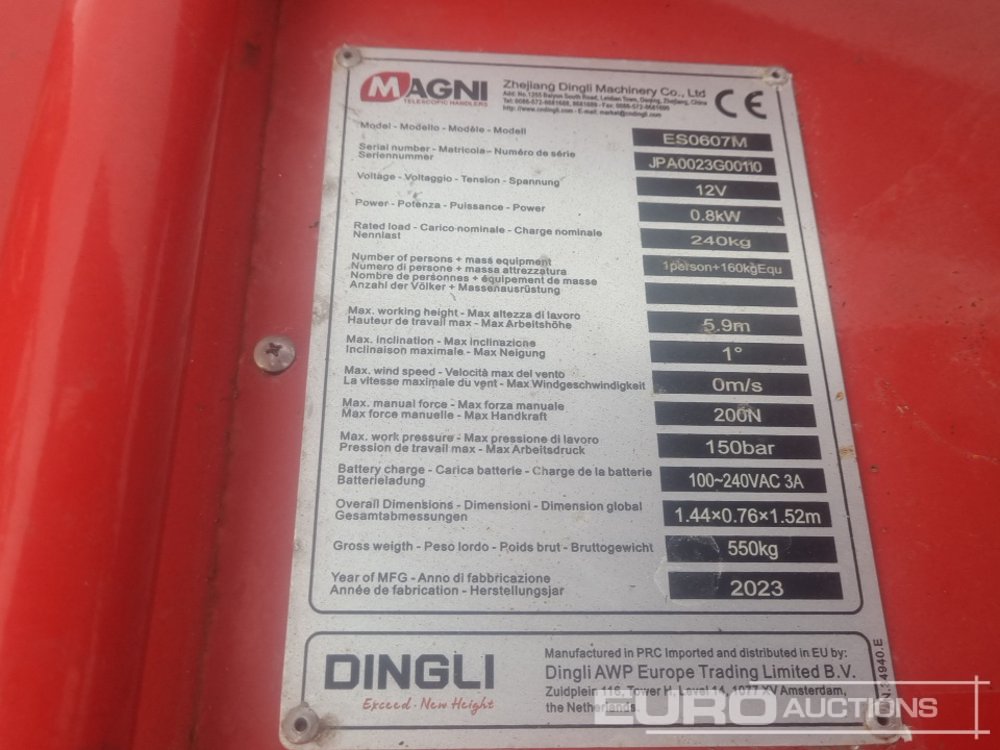Unused Magni ES0607M Electric Push Around Vertical Lift, 5.9m Working Height, 240kg Platform Capacity - JPA0023G00110