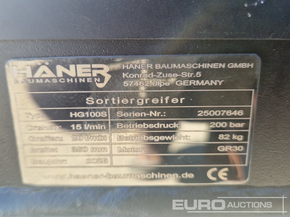 Unused 2026 Haner HG100S Grapple to suit Excavator (Copy of Declaration of Conformity Available / Copia de CE disponible) - 25007646