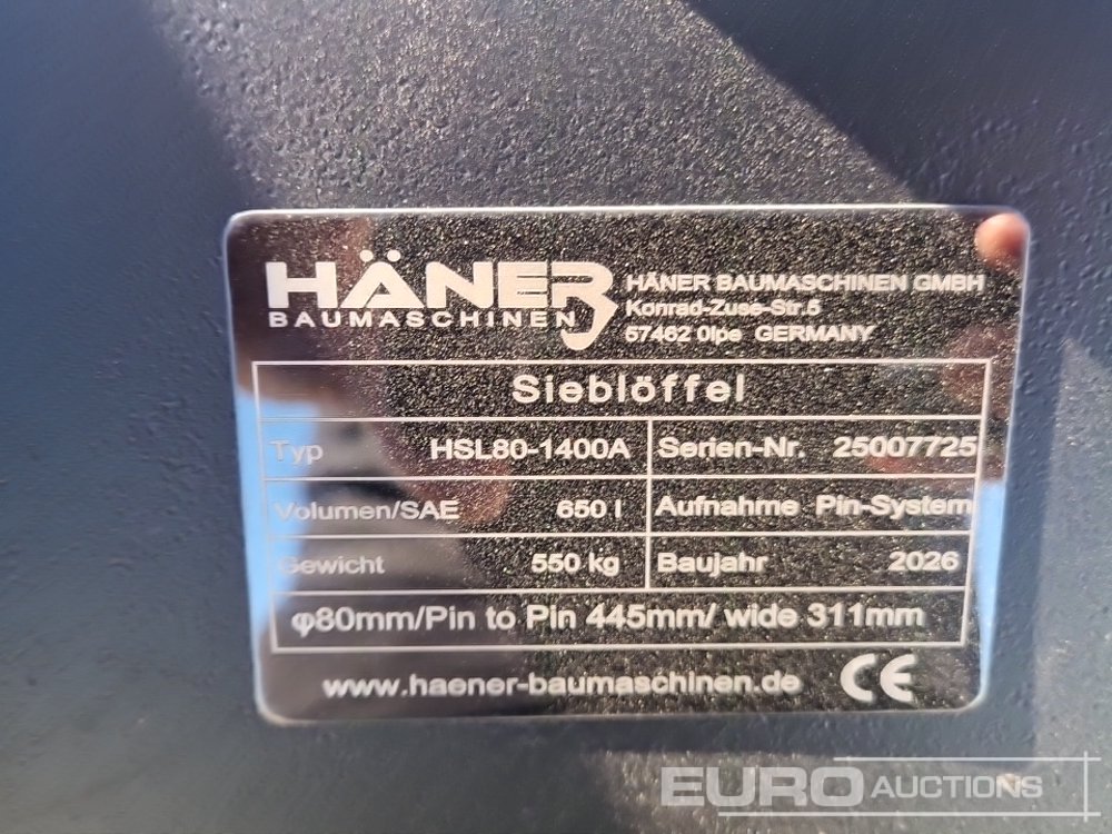 Unused 2026 Haner HSL80-1400A 650L Skeleton Bucket, 80mm Pin to Suit 20 Ton Excavator - 25007725