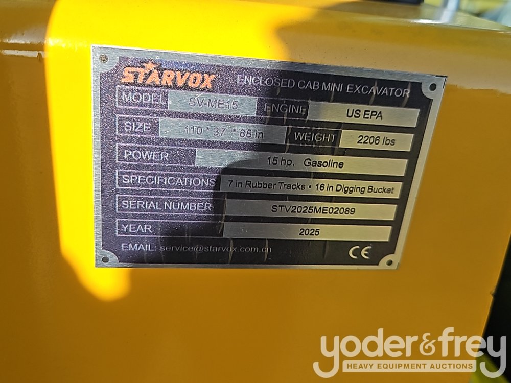 Unused 2025 Starvox SV-ME15 Excavator, Cab Blade, Rubber Tracks, Aux Hydraulics, Bucket, Manual Thumb - STV2025ME02089