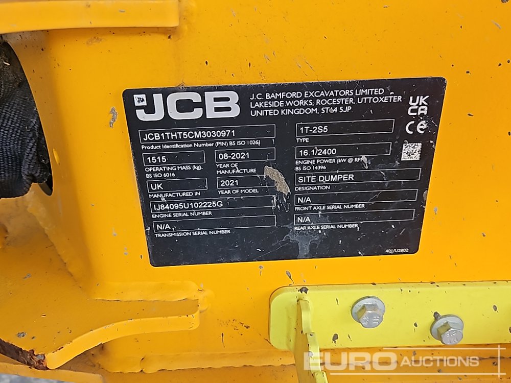 2021 JCB 1T-2S5 1 Ton Hi Tip Dumper, Roll Bar (Meter Reading: 514 Hours) - JCB1THT5CM3030971