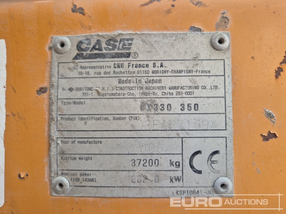 2008 Case 330 Hydraulic Excavator, AC, Piped - DCH350R3N8EAR7109